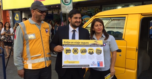 Santiago 17 de febrero.- El Ministro (s) de Transportes y Telecomunicaciones, Carlos Melo, junto a la Jefa del Programa de Fiscalización, Paula Flores y Carabineros de Chile, hicieron un llamado a exigir un transporte escolar seguro para sus hijos este 2017, con el fin de tener un traslado tranquilo y que los conductores cuenten con todas las normas necesarias para transportar a los menores, a sus respectivos establecimientos educacionales.
