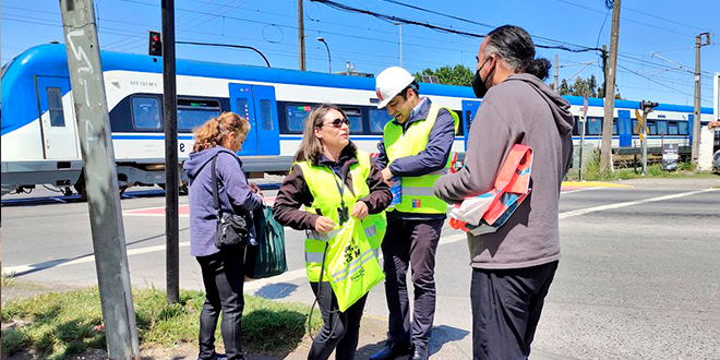 En la instancia, las autoridades junto a Conaset y monitores de EFE entregaron información, a través de dípticos, flyers y elementos reflectantes, sobre las conductas que deben tener los conductores al momento de cruzar por estas vías, con el propósito de evitar siniestros viales.