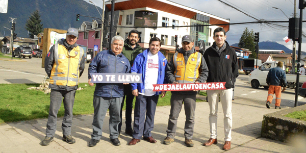 Este viernes en Puerto Aysén Seremi de Transportes y Telecomunicaciones Fabián Rojas, Comisario de Aysén, Capitán Raúl Quintanilla, Director de Tránsito Juan Pablo Altamirano y el dirigente de la línea 3A de Taxis Colectivos Atilio Oyarzún; presentaron esta mañana la campaña de prevención de accidentes de tránsito para Fiestas Patrias: Deja El Auto En Casa.