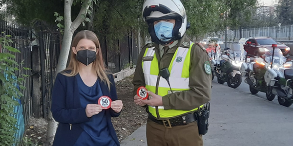 llamado a los conductores a respetar los límites de velocidad en zona urbana, realizó esta mañana la Secretaria Ejecutiva de Conaset, Johanna Vollrath, junto al Teniente Coronel de Carabineros, Luis Bustamante, en el marco de una fiscalización y campaña educativa en Avenida Viel, Santiago Centro.