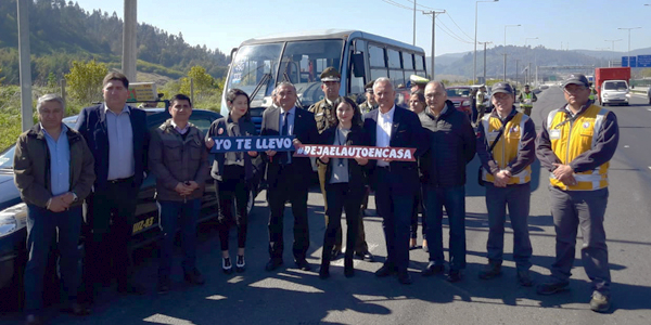 En plena Ruta 146 el Seremi de Transportes y Telecomunicaciones, Jaime Aravena, en conjunto al Gobernador de Concepción, Robert Contreras, Carabineros de Chile y los gremios de transporte presentaron esta mañana la campaña televisiva y radial de prevención de accidentes de tránsito para Fiestas Patrias: #DejaElAutoEnCasa, la cual tiene alcance nacional y regional.