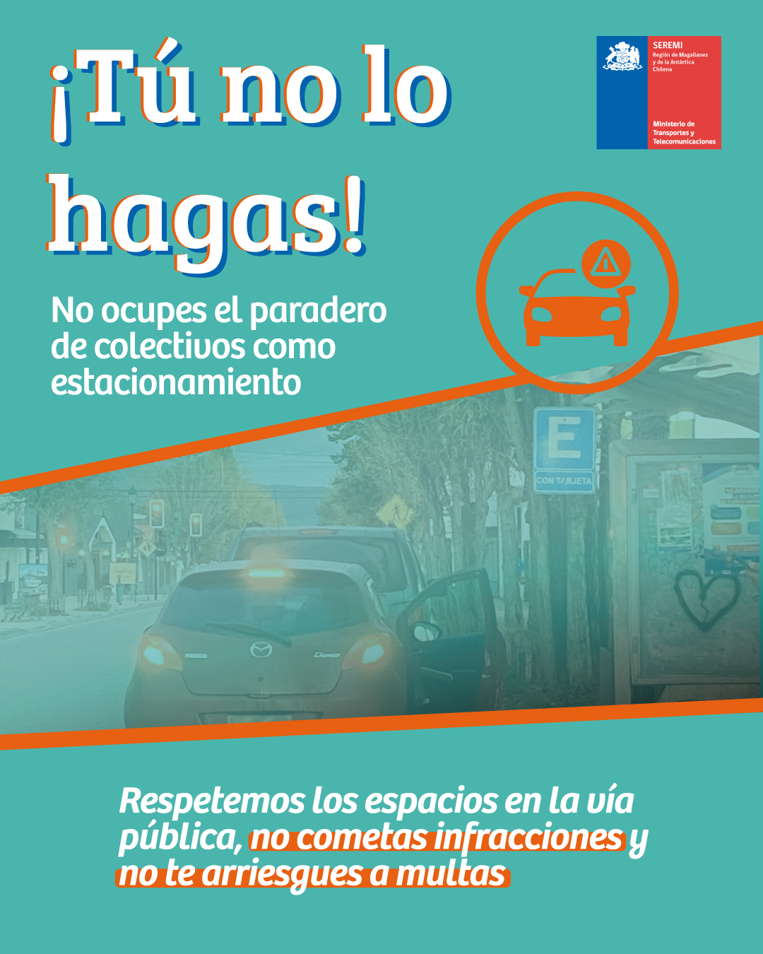 “Se colocarán afiches informativos en cada paradero de Puerto Natales con el fin de que los autos particulares no se estacionen ahí”, informó la delegada Álvarez. El objetivo, agregó, es colaborar con el respeto a la normativa de tránsito y la cultura vial de la ciudad con el fin de otorgar mayor seguridad a las y los usuarios de la locomoción colectiva y disminuir la cantidad de infracciones de tránsito en la capital de Última Esperanza.