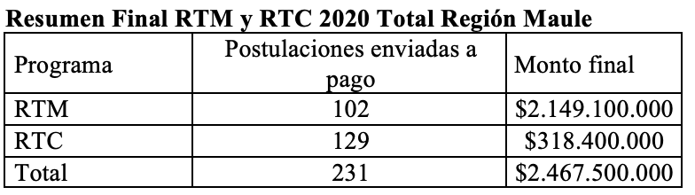 Durante el año 2020 el Consejo Regional del Maule aprobó 2 Mil 467 millones 500 mil pesos para los programas Renueva tu Colectivo y Renueva tu Micro