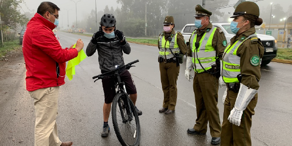 Autoridades de transportes y carabineros hicieron entrega de material reflectante y recomendaciones a usuarios que, de forma creciente, siguen aumentando el uso de la bicicleta en la región llegando a cerca del 14% del total de traslados en el Maule.