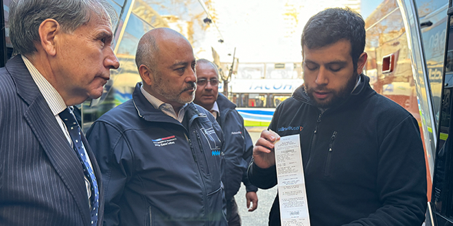 En el marco del plan Calles Protegidas y reforzamiento de las fiscalizaciones ante el aumento de viajes por Fiestas Patrias, el subsecretario de Transportes, Jorge Daza, junto al secretario ejecutivo del Programa Nacional de Fiscalización; Óscar Carrasco; el coronel Emilio Teixidor, de la Prefectura del Tránsito y Carreteras de Carabineros; el seremitt de la región Metropolitana, Rodrigo Valladares, y el presidente de Fenabus, Marcos Carter, dio inicio a un procedimiento de fiscalizaciones en los terminales de buses del país, debido a la nueva normativa, ya vigente, que obliga a las empresas de servicios interurbanos de transporte público de pasajeros a entregar un comprobante por cada bulto o equipaje transportado con el nombre de la persona que viaja y su número de asiento.