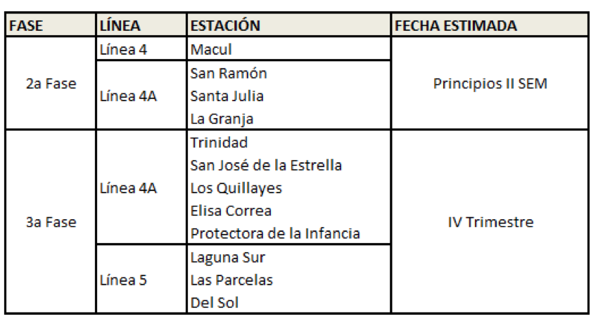 Si bien la habilitación de estas estaciones permitirá a los usuarios de Metro llegar hasta la estación terminal de Línea 5, a Plaza Maipú, tres estaciones de ese tramo aún no tendrán detención de trenes. Es el caso de Laguna Sur, Las Parcelas y Del Sol, que de momento permanecerán cerradas, hasta el cuarto trimestre de este año.