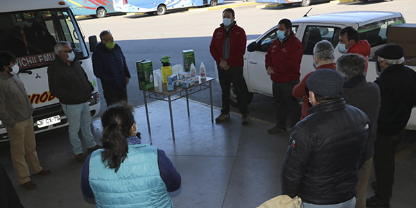 En los terminales de buses de San Fernando y Santa Cruz, el Gobernador provincial Yamil Ethit acompañado por el Seremi de Transportes y Telecomunicaciones Hans González hicieron entrega de los implementos a 50 líneas, con el fin de brindar condiciones de seguridad tanto a pasajeros como conductores mediante la entrega de mascarillas, alcohol gel, amonio cuaternario y pulverizadores.
