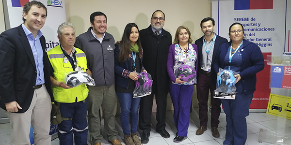 O’Higgins |Hospital de San Vicente firmó compromiso con la convivencia vial: Funcionarios recibieron cascos para bicicletas