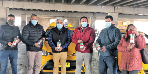 Cerca de 50 mil mascarillas de tres pliegues y 150 litros de alcohol fueron entregados este martes a más de 20 líneas de taxis colectivos rurales que llegan al Terminal Rodoviario Rancagua por el Seremi de Transportes y Telecomunicaciones, Hans González, en compañía del consejero regional, Juan Pablo Díaz.
