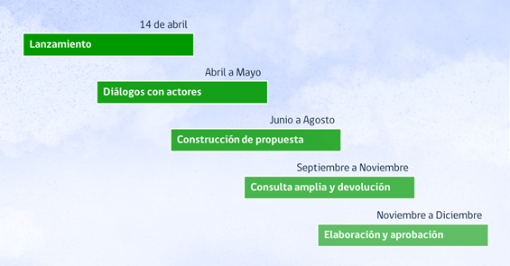 En esta página se irán publicando las convocatorias y resultados del proceso de diálogo y de la consulta amplia, así como los mecanismos para la participación de los actores.
