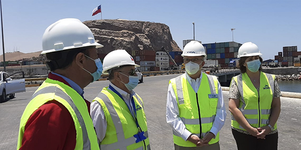 El Subsecretario de Transportes, José Luis Domínguez, y el Seremi de Transportes y Telecomunicaciones, Alfredo Araya, recorrieron hoy el Puerto de Arica para conocer el estado de avance de las obras de dragado y nivelación del fondo en los sitios 4 y 5, que permitirán la llegada de naves de mayor tamaño de la clase Superpost Pánamax Plus.