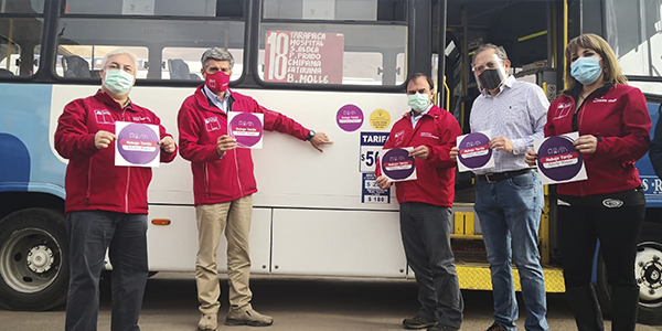 Junto al Seremi de la cartera, Carlos Navarrete, la Seremi de Desarrollo Social, Katherine Aliaga, y representantes de Senama, la autoridad hizo entrega al operador de la línea Trans 18 de los sellos que identifican la vigencia de la rebaja en la tarifa del adulto mayor.