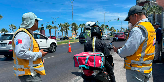 Funcionarios del Programa Nacional de Fiscalización de la Secretaría Regional Ministerial de Transportes y Telecomunicaciones (SeremiTT), en conjunto con funcionarios del Escuadrón Centauro de la Prefectura de Carabineros de Iquique e inspectores de la Municipalidad de Iquique, realizaron un operativo intersectorial con foco en la fiscalización de motocicletas y el cumplimiento de la Ley 21.539.